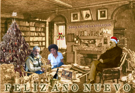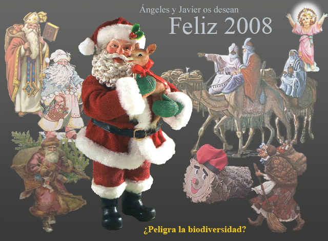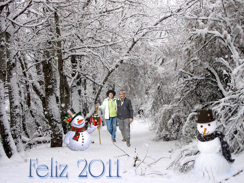 2010 Desde nuestro pueblo, inusualmente nevado, queremos desearos a todos lo mejor para el año entrante. La foto de fondo está hecha durante la nevada del 9 de enero de 2009 en el soto del Jarama, Parque Regional del Sureste (foto: Javier). Podéis ver más fotos de aquel día pinchando aquí. Nosotros también hemos salido del mismo sitio, pero en otoño de este año (foto: Cova). Los muñecos los hemos compuesto con electrones reciclados. |