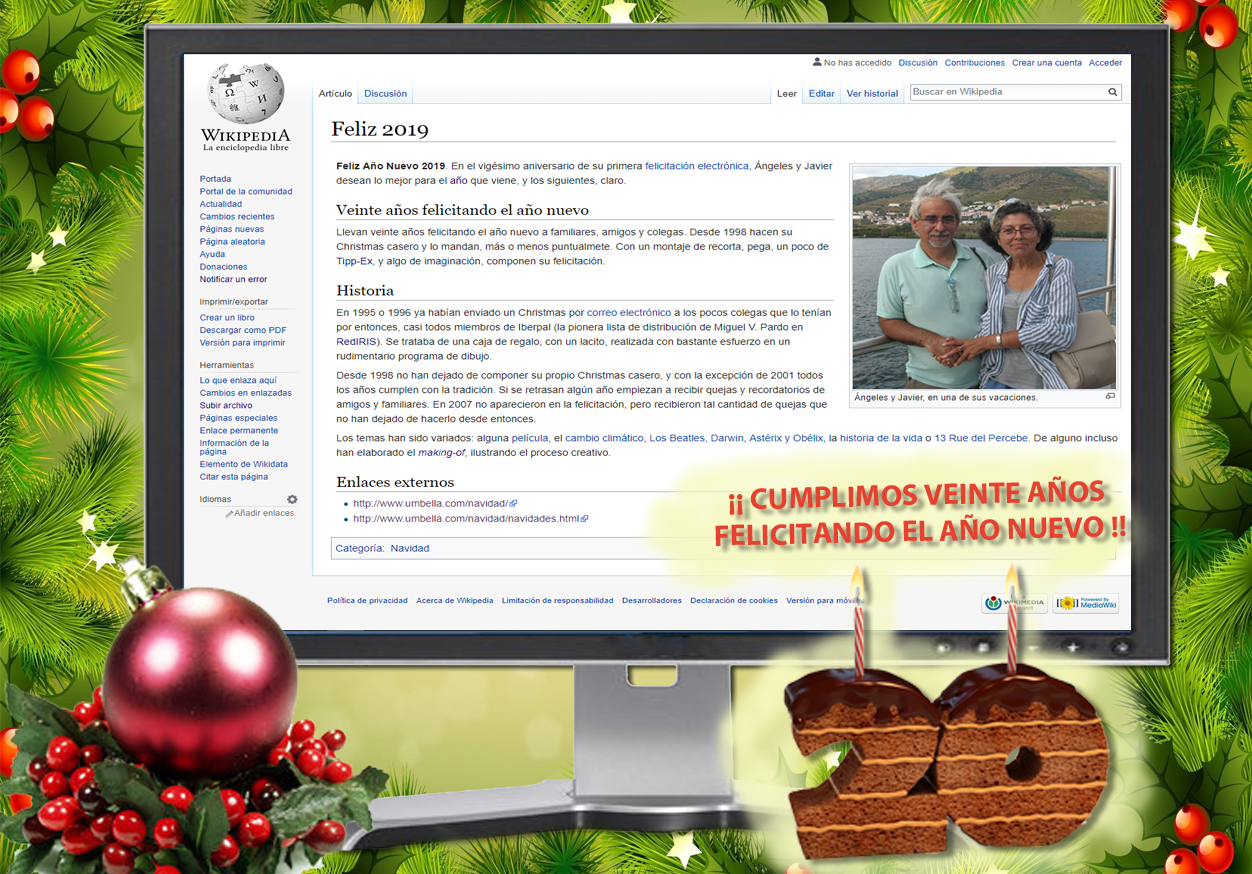 Para celebrar los veinte años que llevamos felicitándoos el Año Nuevo, lo hicimos en esta ocasión desde una conocida enciclopedia en línea.
